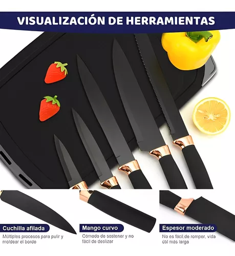 completa para todas tus necesidades culinarias, desde preparar deliciosos platillos hasta servirlos con elegancia.CARACTERÍSTICAS:* Mango de madera maciza y silicona de alta calidad: La cabeza de silicona combinada con el mango de madera maciza de alta calidad garantiza que no se dañe en el uso diario. El diseño no se dobla, rompe ni se oxida, y no se quema.* Juego de utensilios de cocina de grado alimenticio: Nuestros utensilios de silicona están hechos de materiales de la más alta calidad, por lo que puede usar todos los electrodomésticos con confianza.* Soporte resistente a altas temperaturas: La suavidad de la silicona aumenta en todas las direcciones, y el núcleo de acero inoxidable integrado mejora la durabilidad y la dureza, y evita que el raspador se doble o deforme. Tanto el mango como la parte superior de silicona pueden soportar altas temperaturas de 446 °F (446.0 °F), por lo que es fácil cocinar los alimentos que quieras sin preocuparte de que los alimentos se peguen a tus utensilios de cocina.NOTA IMPORTANTE: No coloque en el lavaplatos y nunca sumerja el mango de madera en el agua durante largos períodos de tiempo o la madera puede agrietarse.* El set incluye una variedad de utensilios de alta calidad, como cucharones, espátulas, pinzas, cucharas de medir, batidores y mucho más, cada uno diseñado con materiales resistentes y ergonómicos para garantizar un rendimiento excepcional y comodidad durante el uso prolongado.* Fabricados con acero inoxidable de grado alimenticio y silicona de primera calidad, estos utensilios son seguros para su uso con todo tipo de utensilios de cocina, incluidos los antiadherentes, y son resistentes al calor y a las manchas. Su diseño elegante y moderno añadirá un toque de estilo a tu cocina, mientras que su construcción robusta garantiza una durabilidad excepcional que resistirá el paso del tiempo.INCLUYE:- 1 Cucharón sopero- 1 Cuchara escurridora- 1 Cuchara sólida- 1 Servidor de pasta- 1 Espátula ranurada- 1 Espátula sólida- 1 Raspador- 1 Cuchara raspadora- 1 Cepillo para aceite- 1 Pinza- 1 Batidor- 1 Cuchillo de chef- 1 Cuchillo para pan- 1 Cuchillo universal- 1 Cuchillo multiusos- 1 Cuchillo para pelar- 1 Tijeras- 1 Tabla para cortar- 1 Bloque para cuchillos y porta utensilios.